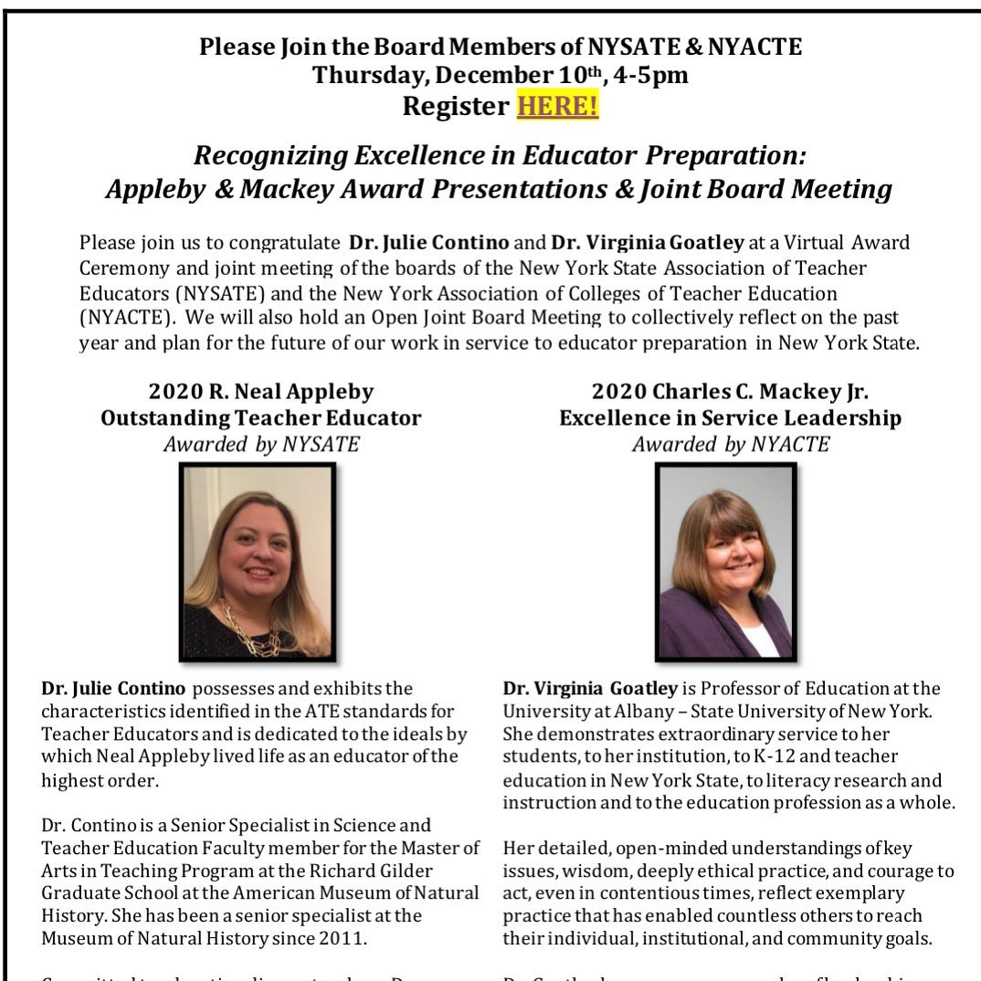 NYSATE is the New York State unit of the national Association of Teacher Educators (ATE). We are committed to promoting quality teacher education programs and providing opportunities for individual professional growth for all teacher educators.